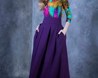 High Waist Maxi Skirt In Pleated Pattern Available In Multiple Etsy
